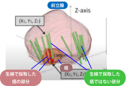 こうしたがんの疑われる部位を正確に事前予測できない中、前立腺全体にまんべんなく複数個所生検針を刺し組織を採取して診断するのが従来型の無作為採取法である。