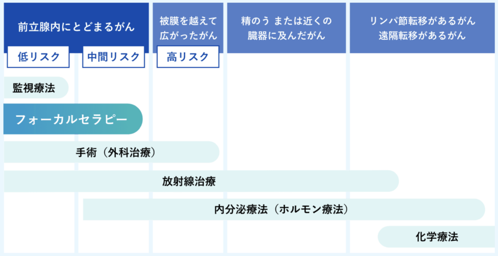 フォーカルセラピーは、治療が必要な部分だけを局所的に治療する新しい方法です。治療方法はさまざまありますが、代表的なものが「マイクロ波熱凝固治療」です。電子レンジと同じ仕組みを応用した技術で、マイクロ波を用いてねらった部分だけを高温にすることでがん組織を死滅させます。前立腺は射精に関連する臓器であり、また勃起を調整する神経が前立腺に接して走っているため、前立腺全体と周辺に影響が及ぶ治療では射精機能や勃起機能が失われる合併症の危険性があります。また、前立腺の下には尿漏れを防ぐ尿道括約筋もあり、尿漏れなどの排尿障害をきたす危険性もあります。フォーカルセラピーは病巣部分だけを治療することが可能なため、こうした合併症を最小限にとどめ、性機能等の治療前の機能を温存することで「生活の質」をできる限り維持することを目指します。